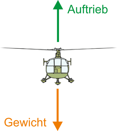 Damit sich ein Helikopter in der Luft halten kann, muss der Auftrieb genau gleich gross, wie sein Gewicht sein (Abb. 8).