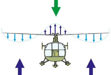 Während dem stabilen Schwebeflug wird wie bereits beschrieben die Luft von oben nach unten durch den Rotor beschleunigt. Der Luftdurchsatz ist über die Länge des Rotorblattes nicht konstant (Abb. 27).