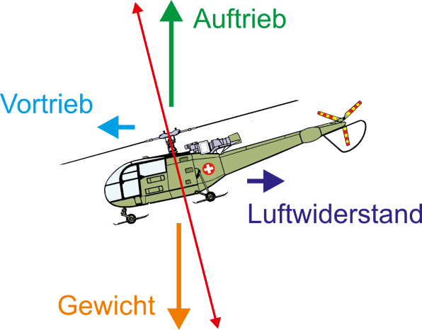 Die Helikopter unterscheiden sich ganz grundsätzlich von den Flächenflugzeugen. Zwar wirken auch beim Helikopter aerodynamische Kräfte, die sind aber viel schwieriger zu berechnen und zu erklären als bei einem Flugzeug. Dies vor allem weil beim sich drehenden Rotor zusätzliche Kräfte entstehen, welche bei einem Flächenflugzeug nicht vorhanden sind.